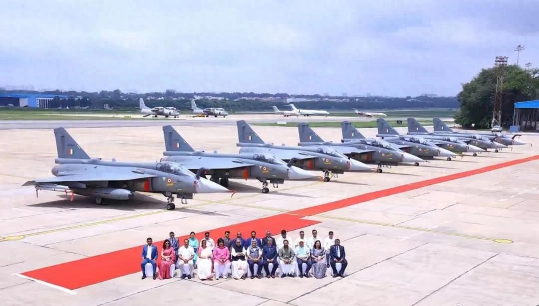 咱们按照常理,从拍照的角度来看,哪怕还有一架LCA MK1A战斗机安装有发动机,三哥也会优先把它摆在左手边第三架飞机的位置上。结果左手边第三架飞机都没有发动机,一个合理的解释就是,这交付的8架LCA MK1A中,除了头两架飞机有发动机,剩下的六架飞机全都没有安装发动机!